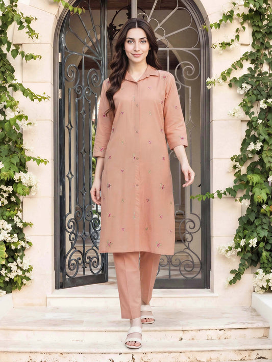 2 Piece Self Jacquard Suit- Embroidered (Pret)