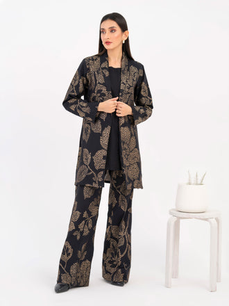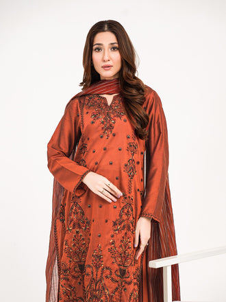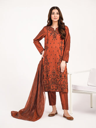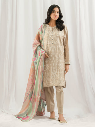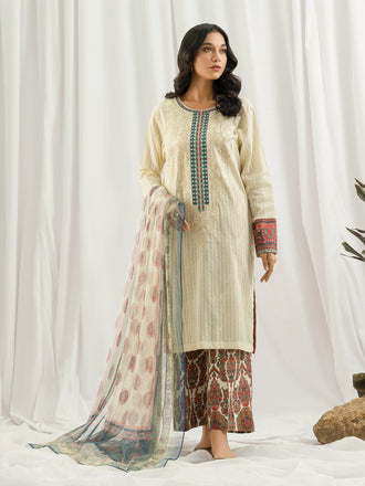 3 Piece Jacquard Suit-Embroidered (Pret)