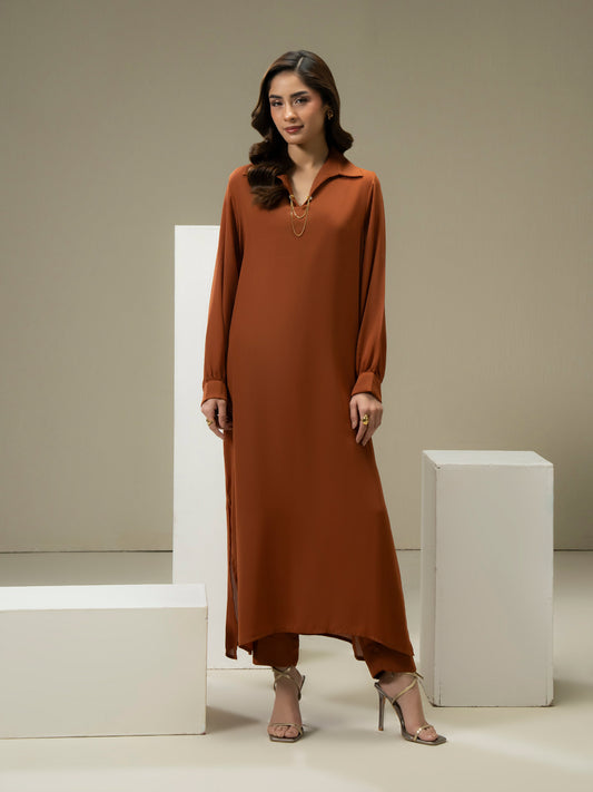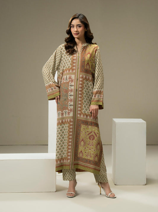 2 Piece Jacquard Shirt-Embroidered (Pret)