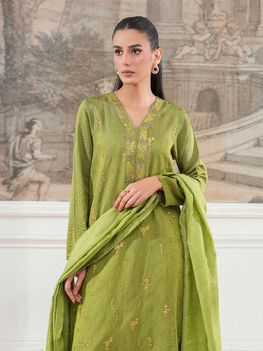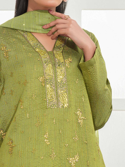 3 Piece Raw Silk Suit-Embroidered (Unstitched)