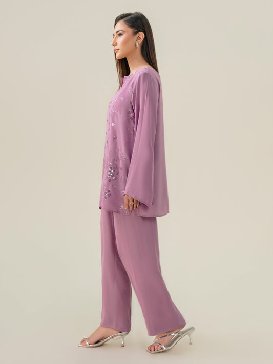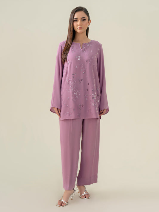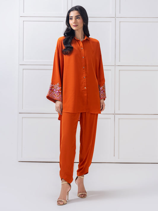 Satin Co-ord Set-Embroidered (Pret)