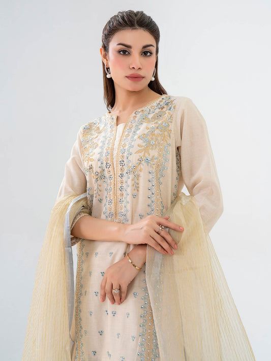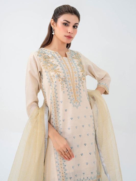 3 Piece Jacquard Suit-Embroidered (Pret)