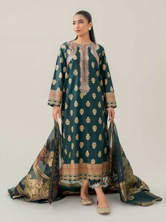 3 Piece Jacquard Suit-Embroidered (Pret)