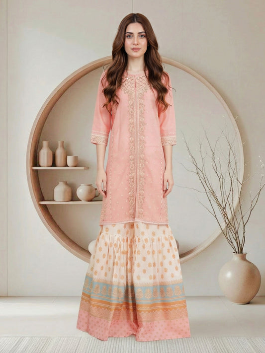 2 Piece Viscose Glitter Suit- Embroidered (Pret)