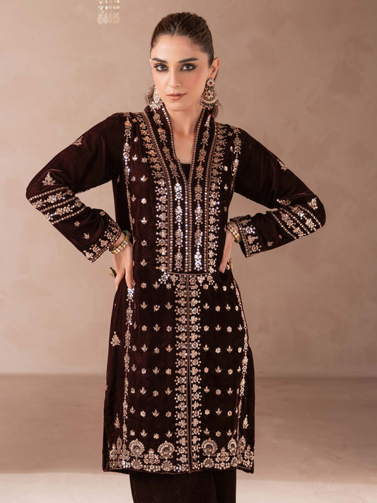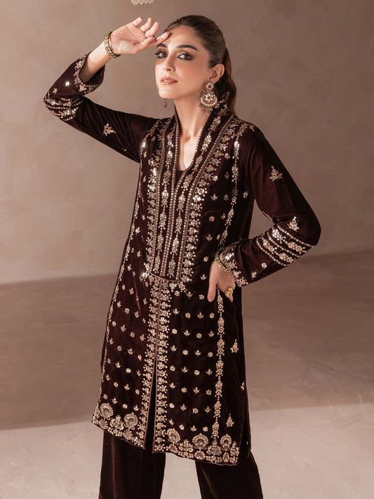 2 Piece Velvet Suit-Embroidered (Pret)