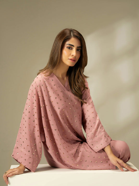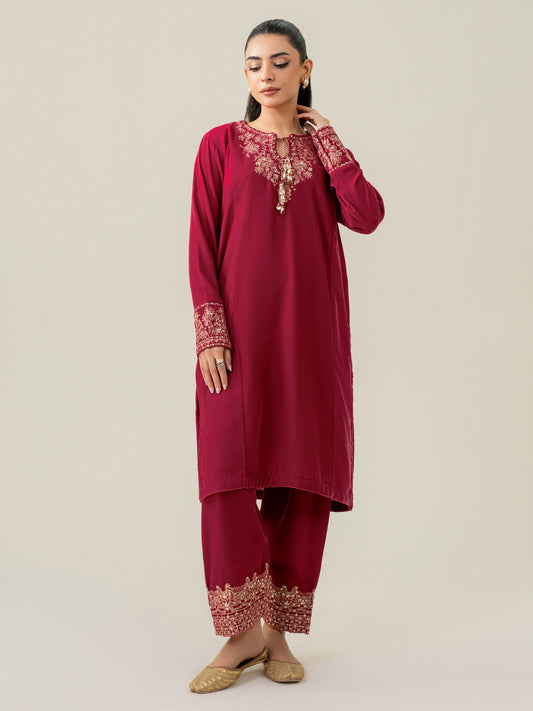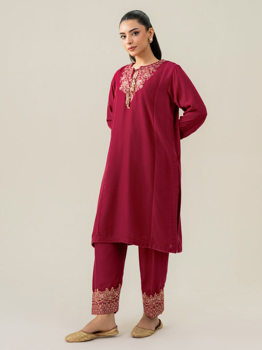 2-Piece Velvet Suit- Embroidered (Pret)