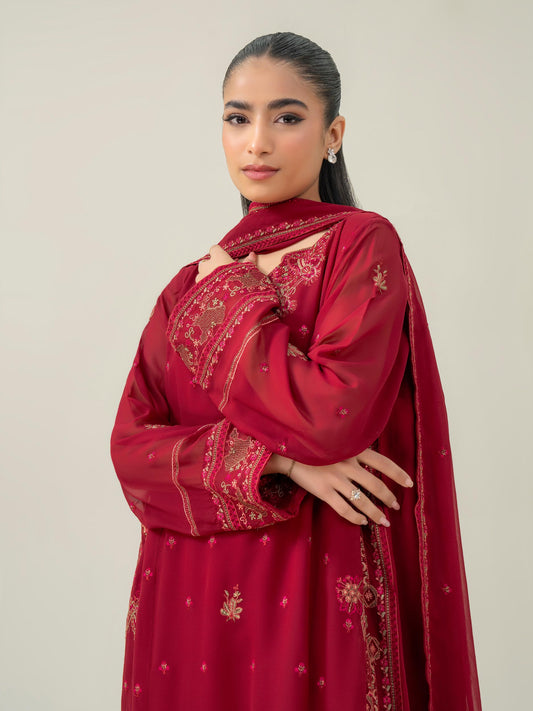 3 Piece Raw Silk Suit-Embroidered (Pret)