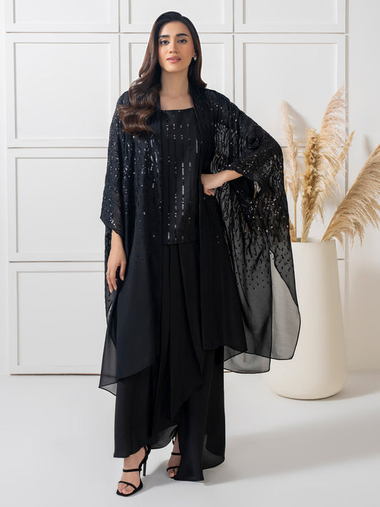 3-Piece Satin Suit- Embroidered (Pret)