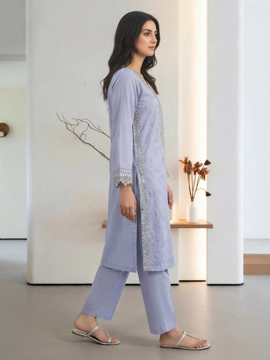 2 Piece Lawn Glitter Suit- Embroidered (Pret)