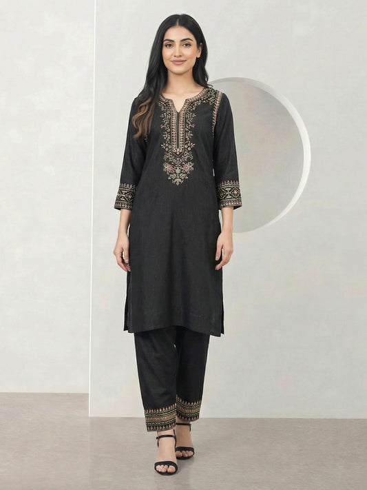2 Piece Khaddi Silk Suit-Embroidered (Pret)