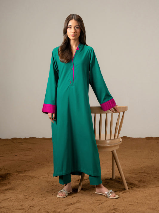 2 Piece Raw Silk Suit-Embroidered (Pret)