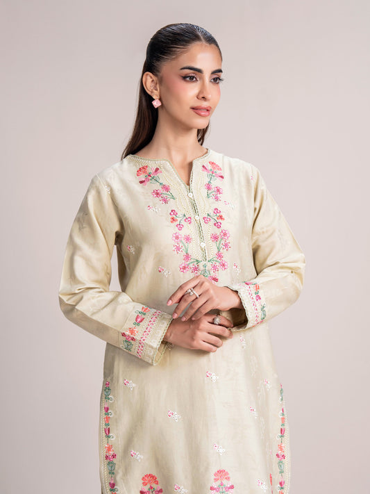 Dobby Jacquard Kurti- Embroidered (Pret)