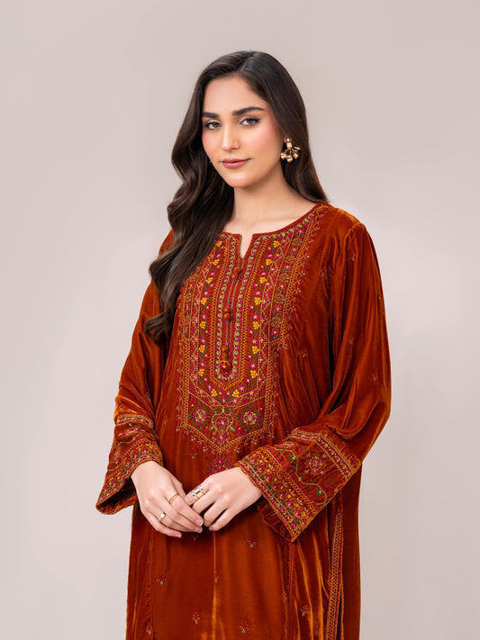2 Piece Velvet Suit-Embroidered (Pret)