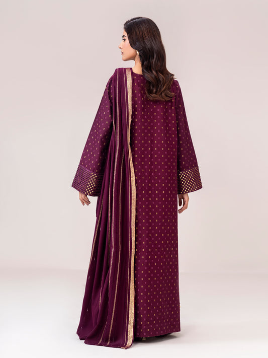 3 Piece Self Jacquard Suit- Embroidered (Pret)