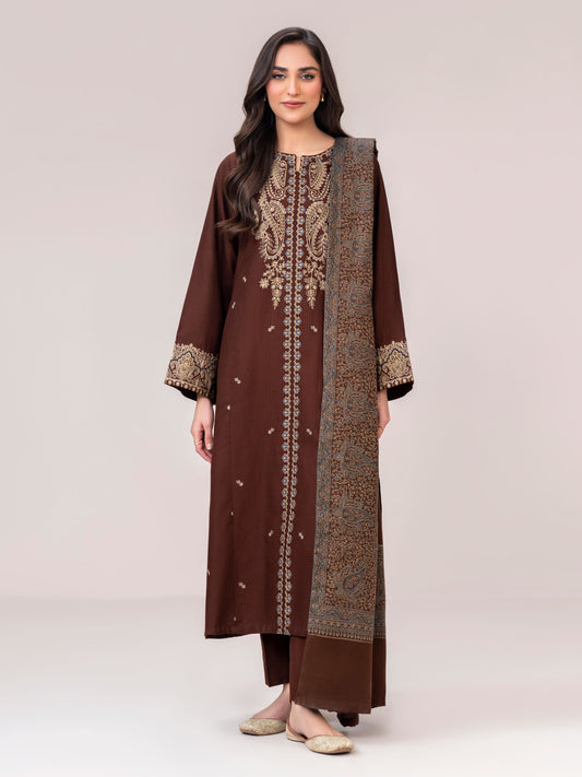3 Piece Khaddar Suit- Embroidered (Pret)