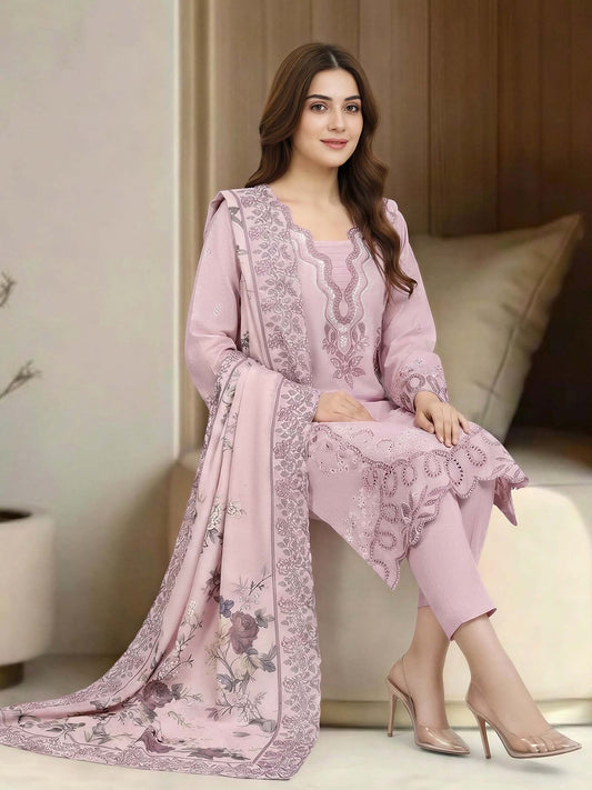 3 Piece Special Jacquard Suit-Embroidered (Unstitched)