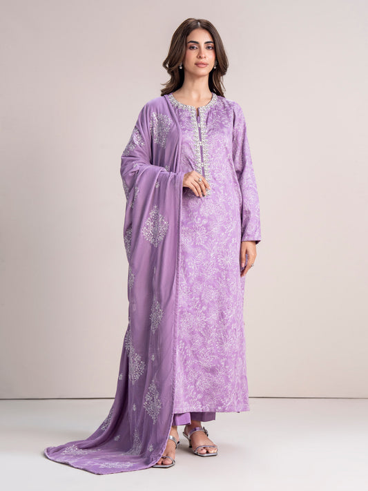 3 Piece Khaddar Suit- Embroidered (Pret)