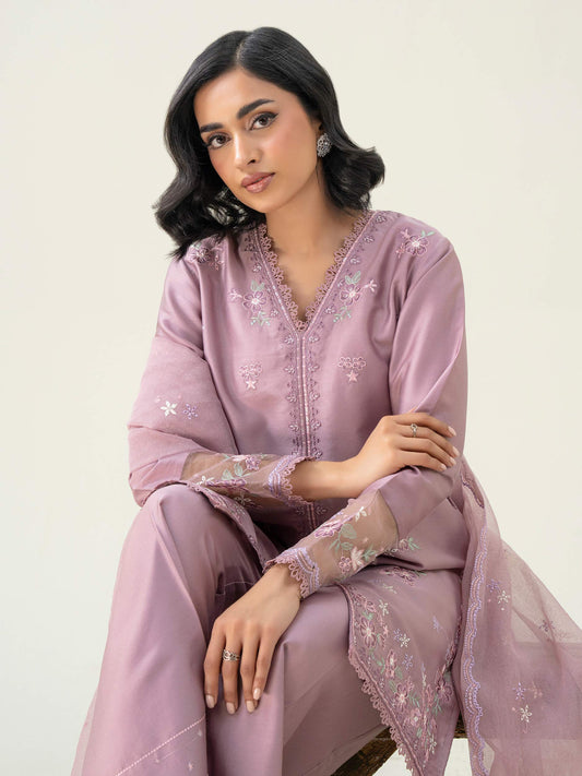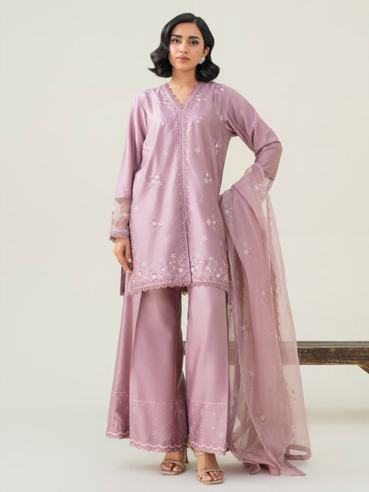 3-Piece Raw Silk Suit-Embroidered (Pret)