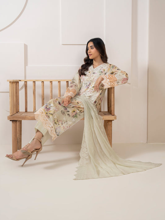 3 Piece Self Jacquard Suit- Embroidered (Pret)