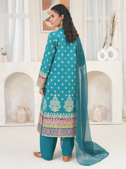 3 Piece Satin Suit-Paste Print (Unstitched)