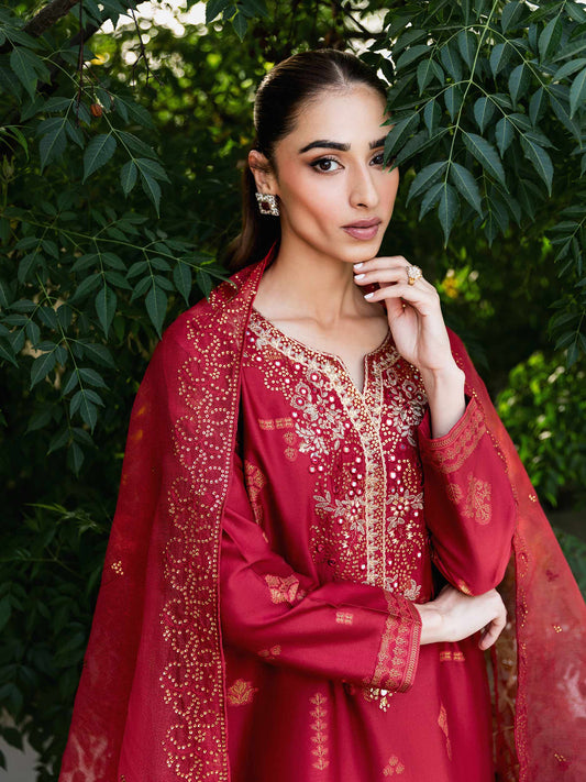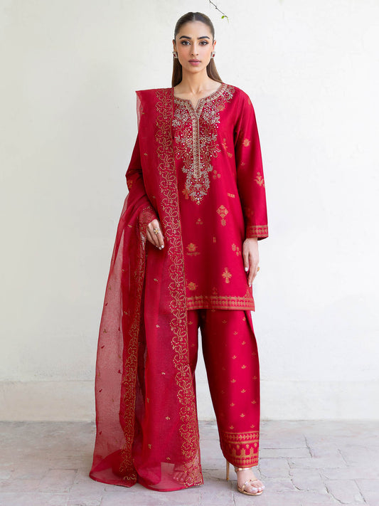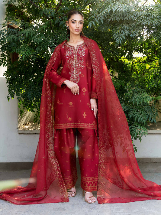 3 Piece Jacquard Suit-Embroidered (Unstitched)