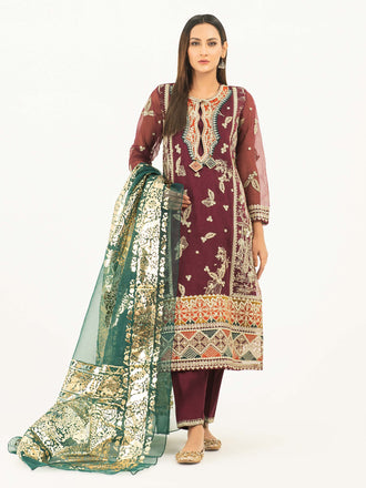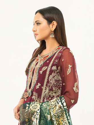 3 Piece Organza Suit-Embroidered (Pret)