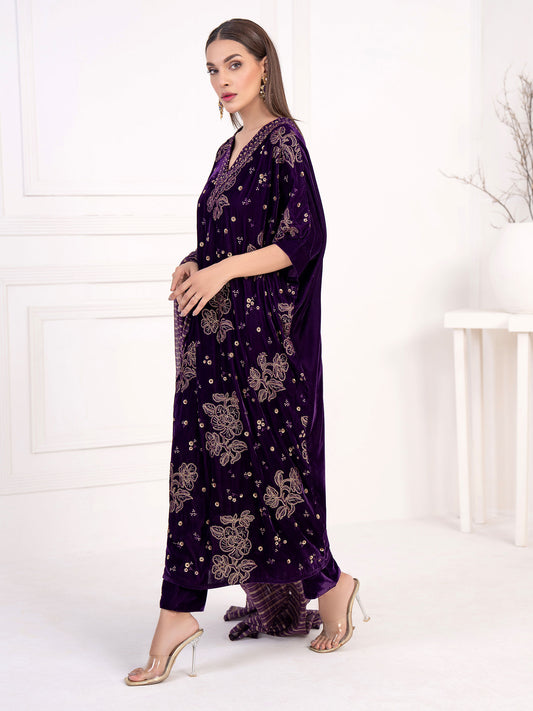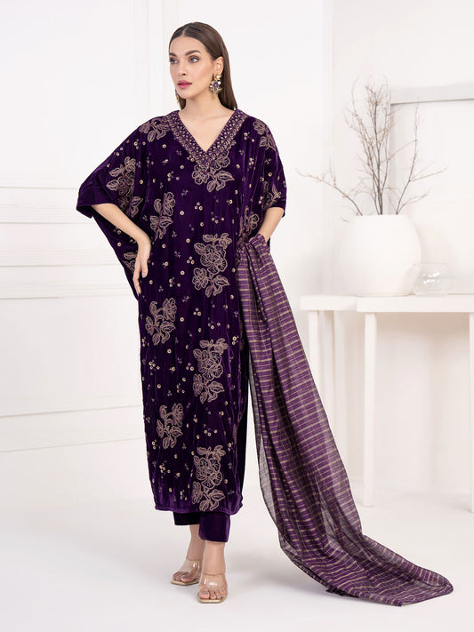 3 Piece Velvet Suit-Embroidered(Unstitched)