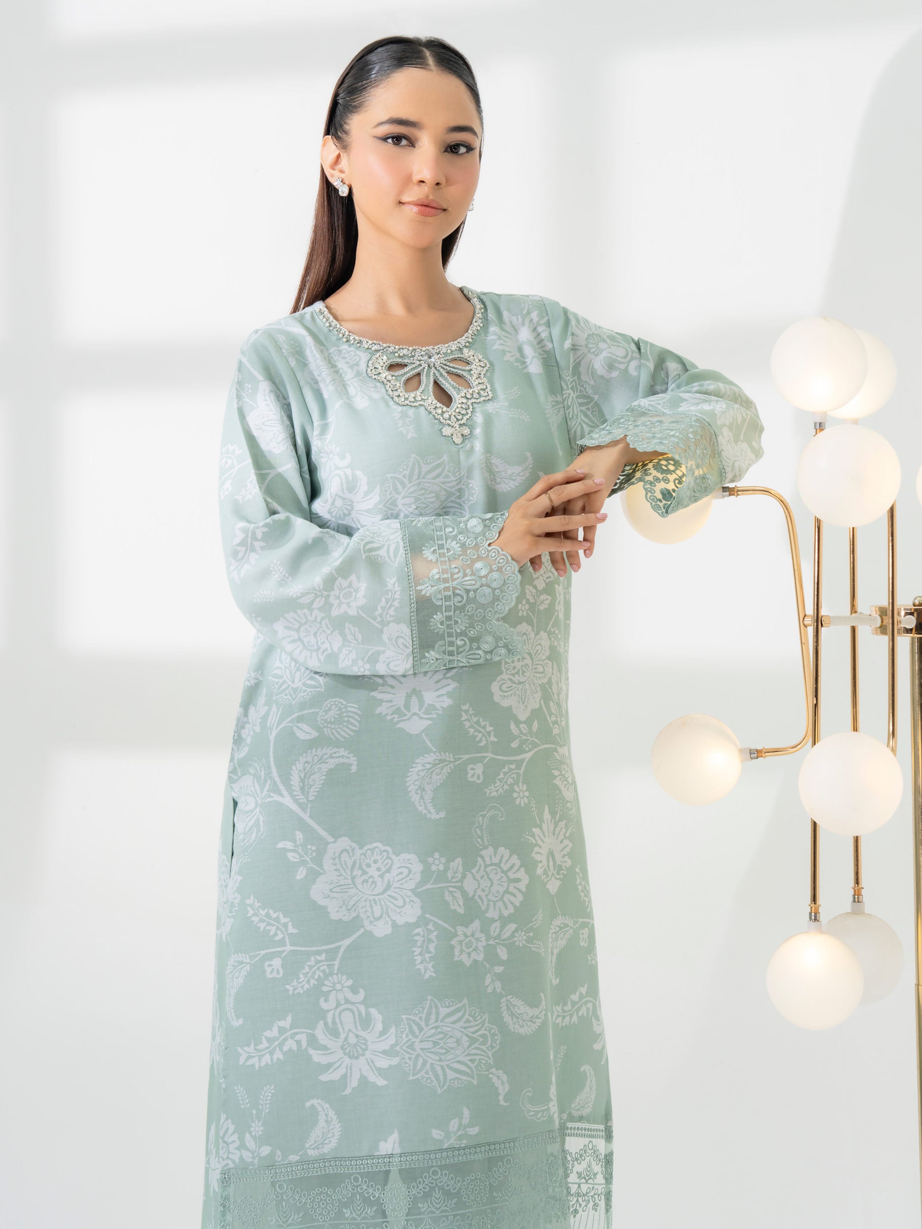 2 Piece Jacquard Suit-Embroidered (Pret)
