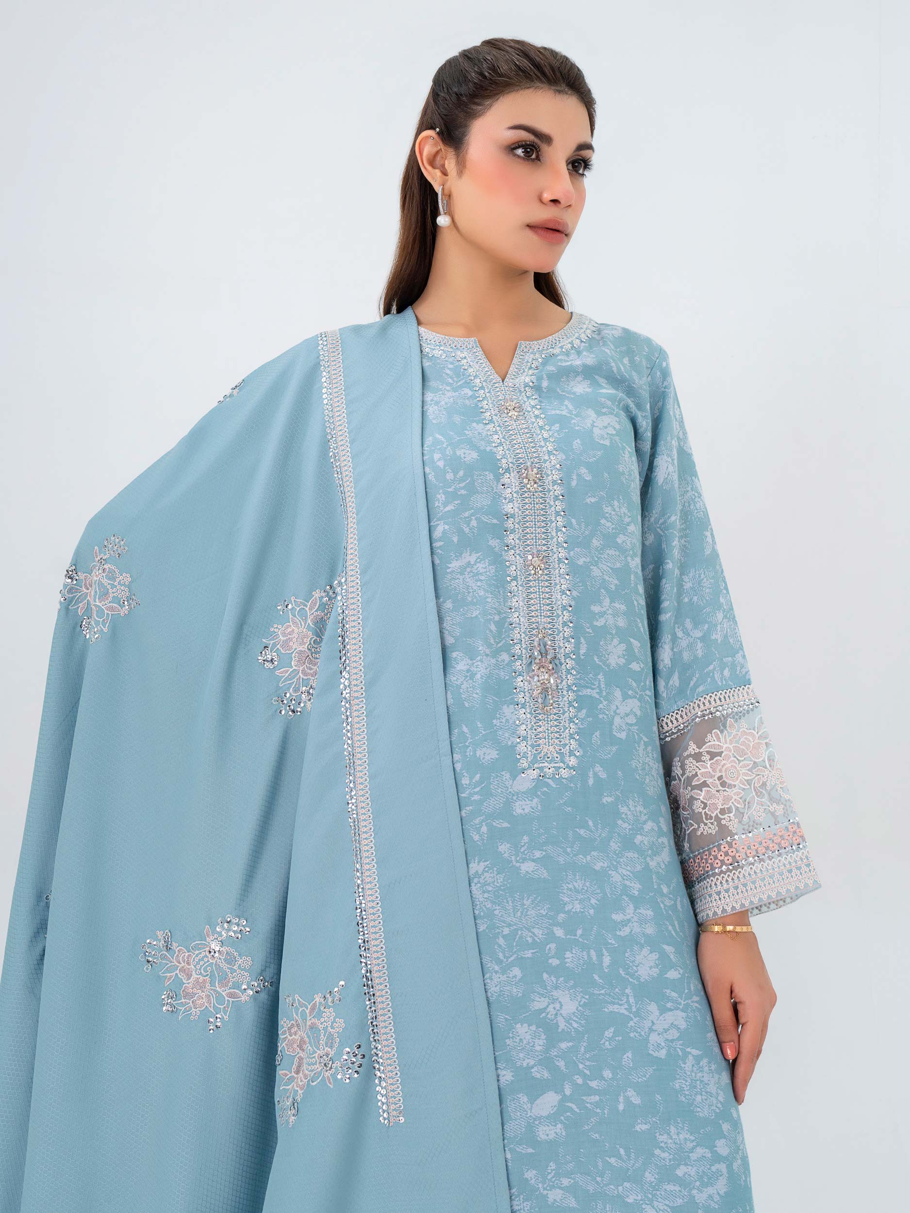 3 Piece Jacquard Suit-Embroidered (Pret)
