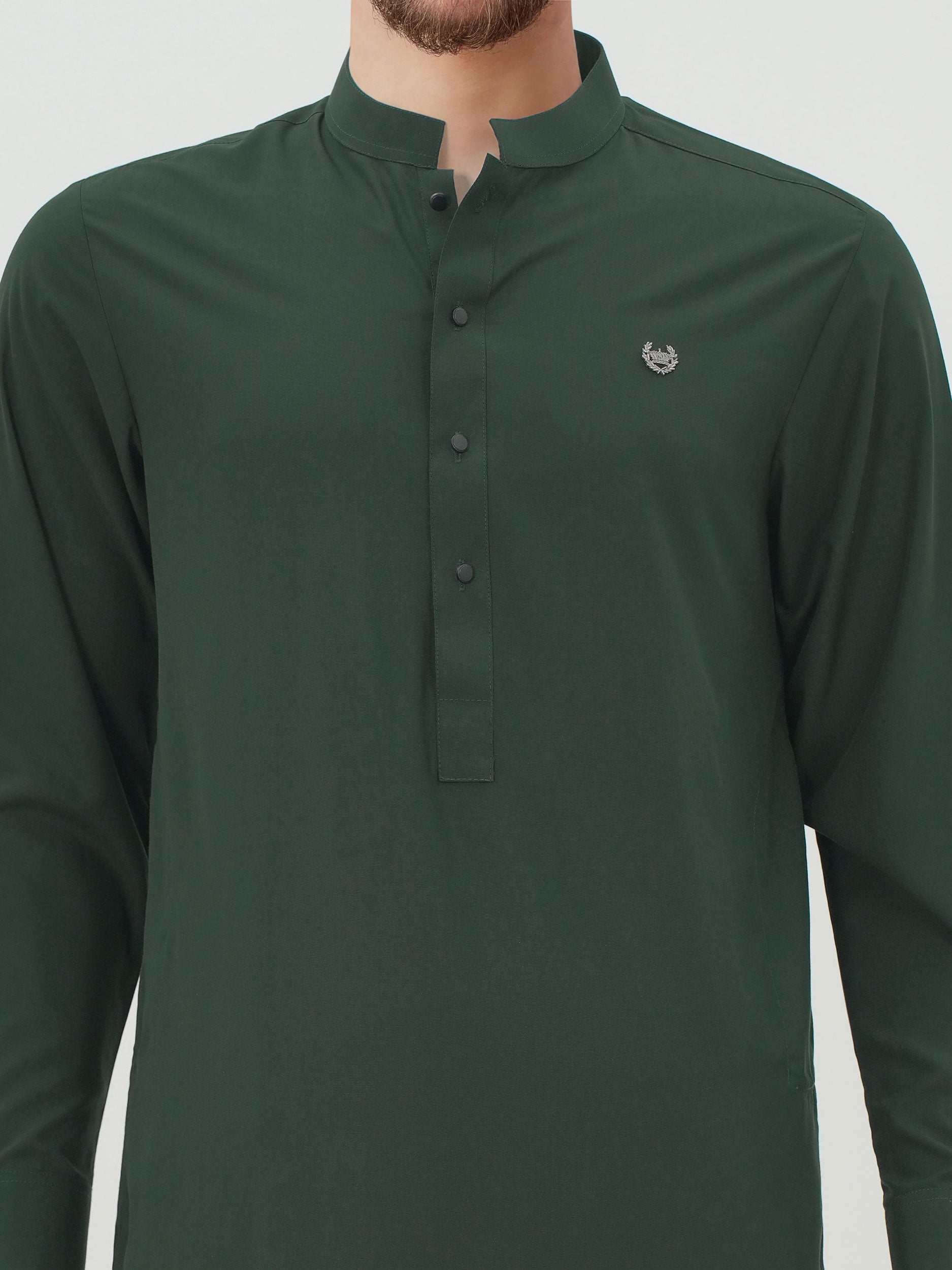 Straight-cut kurta with a full cuffed sleeves, and two side pockets.