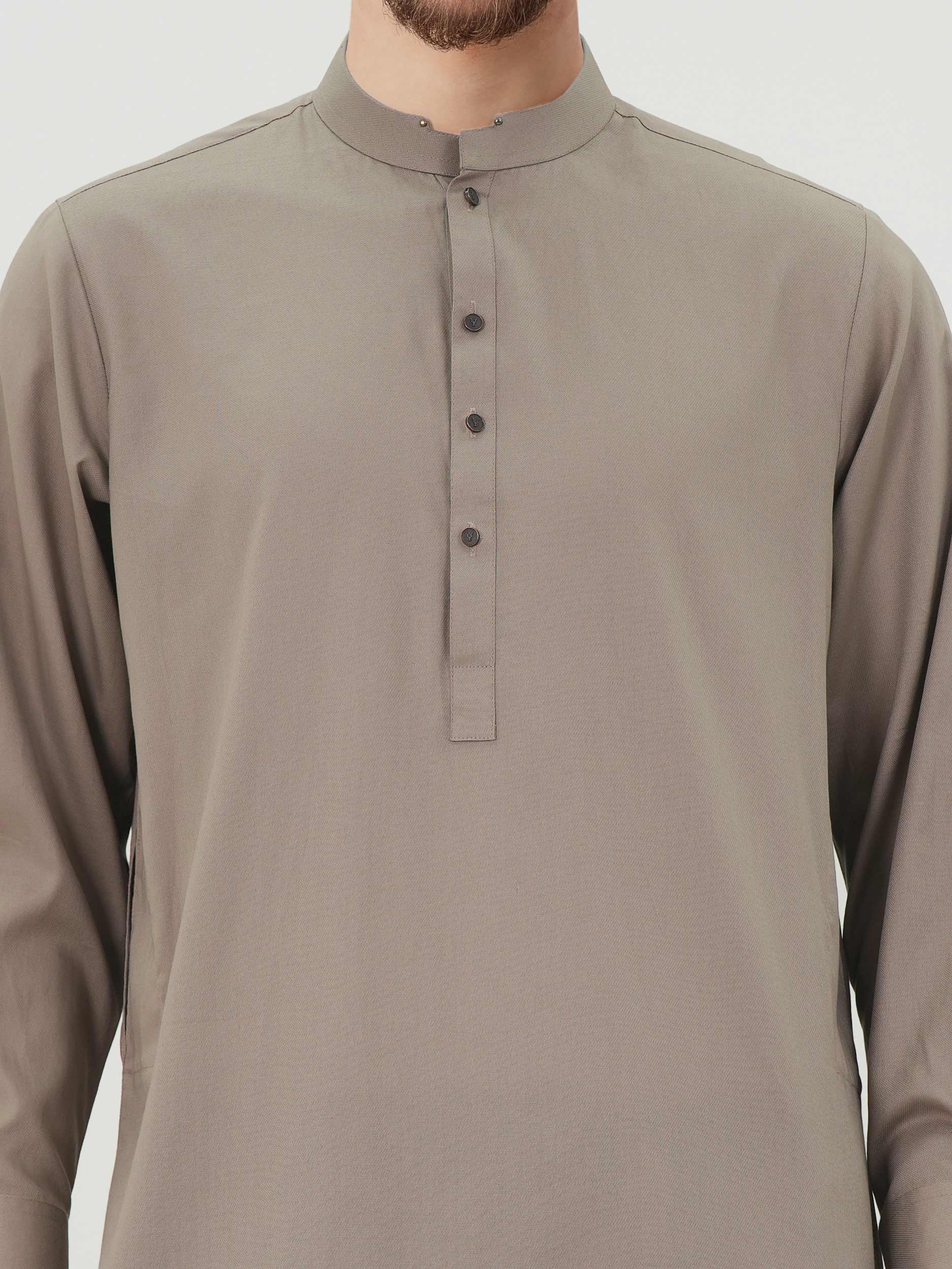 Straight-cut kurta with a full cuffed sleeves, and two side pockets.