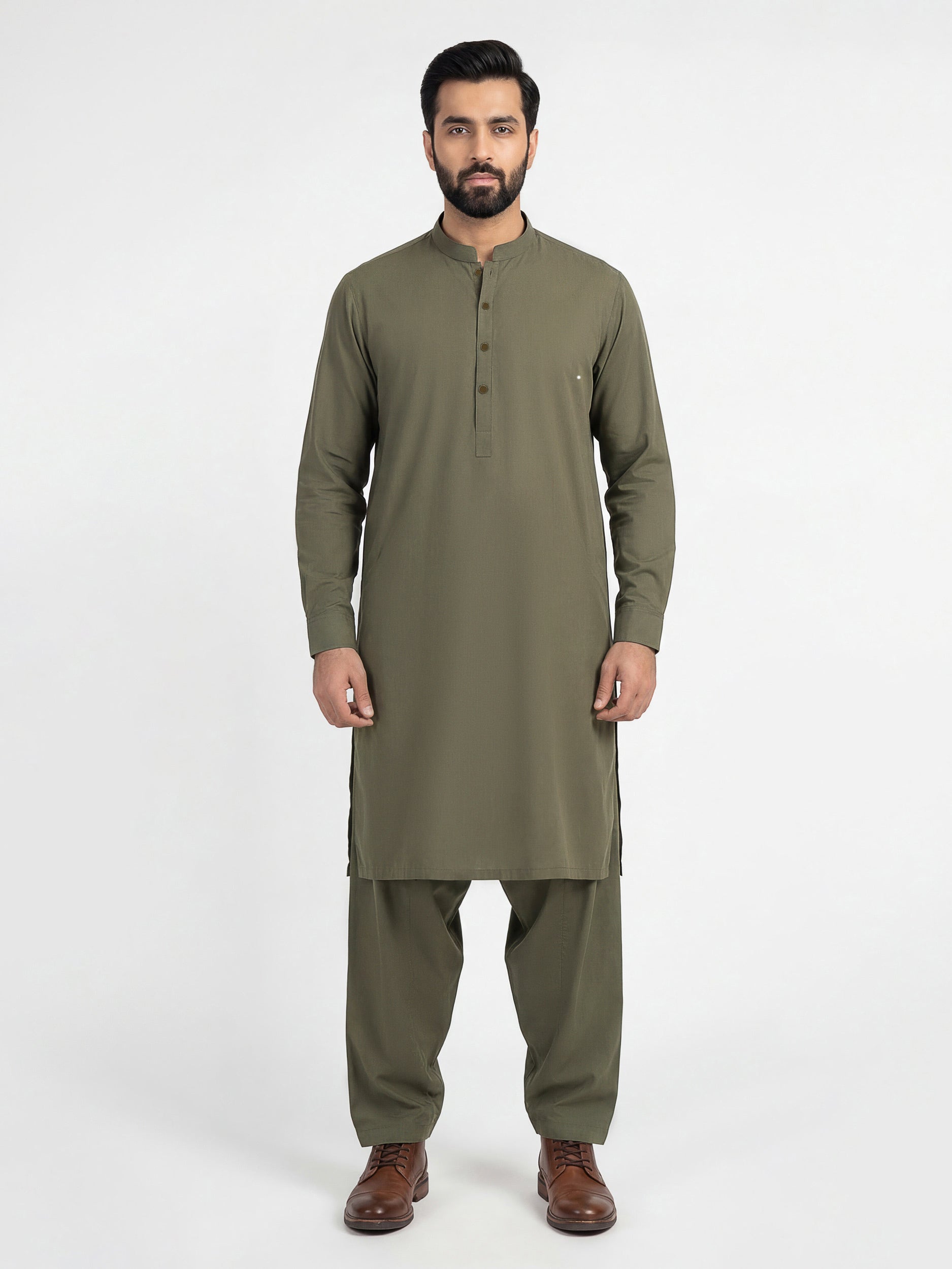 - Straight-cut kurta with a full cuffed sleeves, and two side pockets.