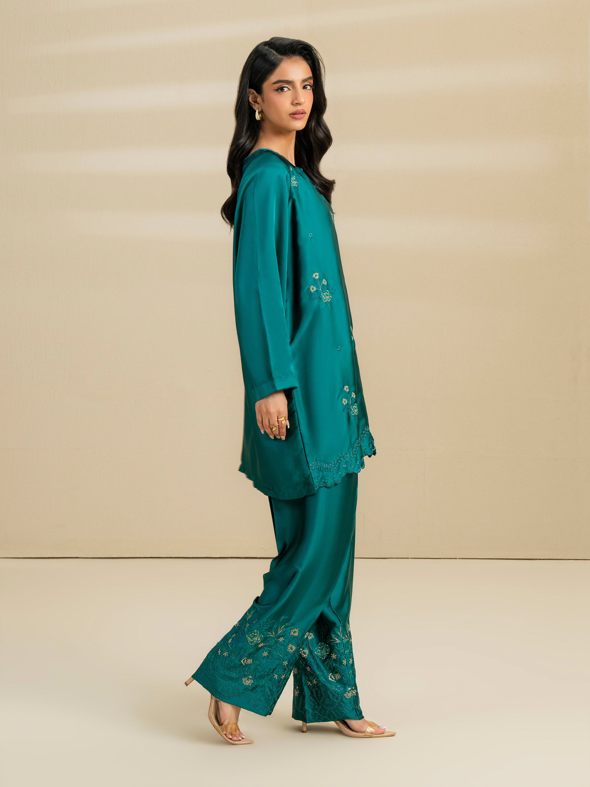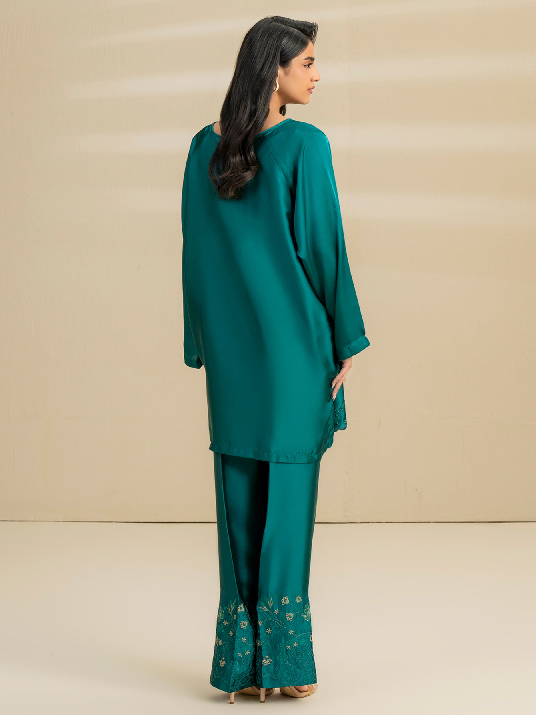 - Dyed embroidered wide-leg trousers with embroidered hem