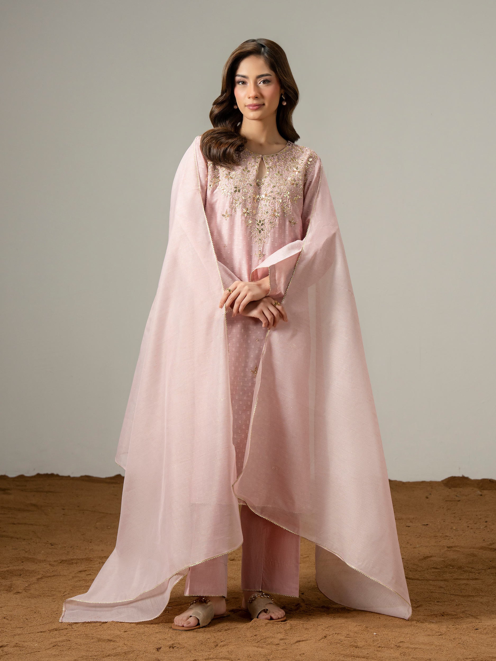 3 Piece Jacquard Suit-Embroidered (Pret)