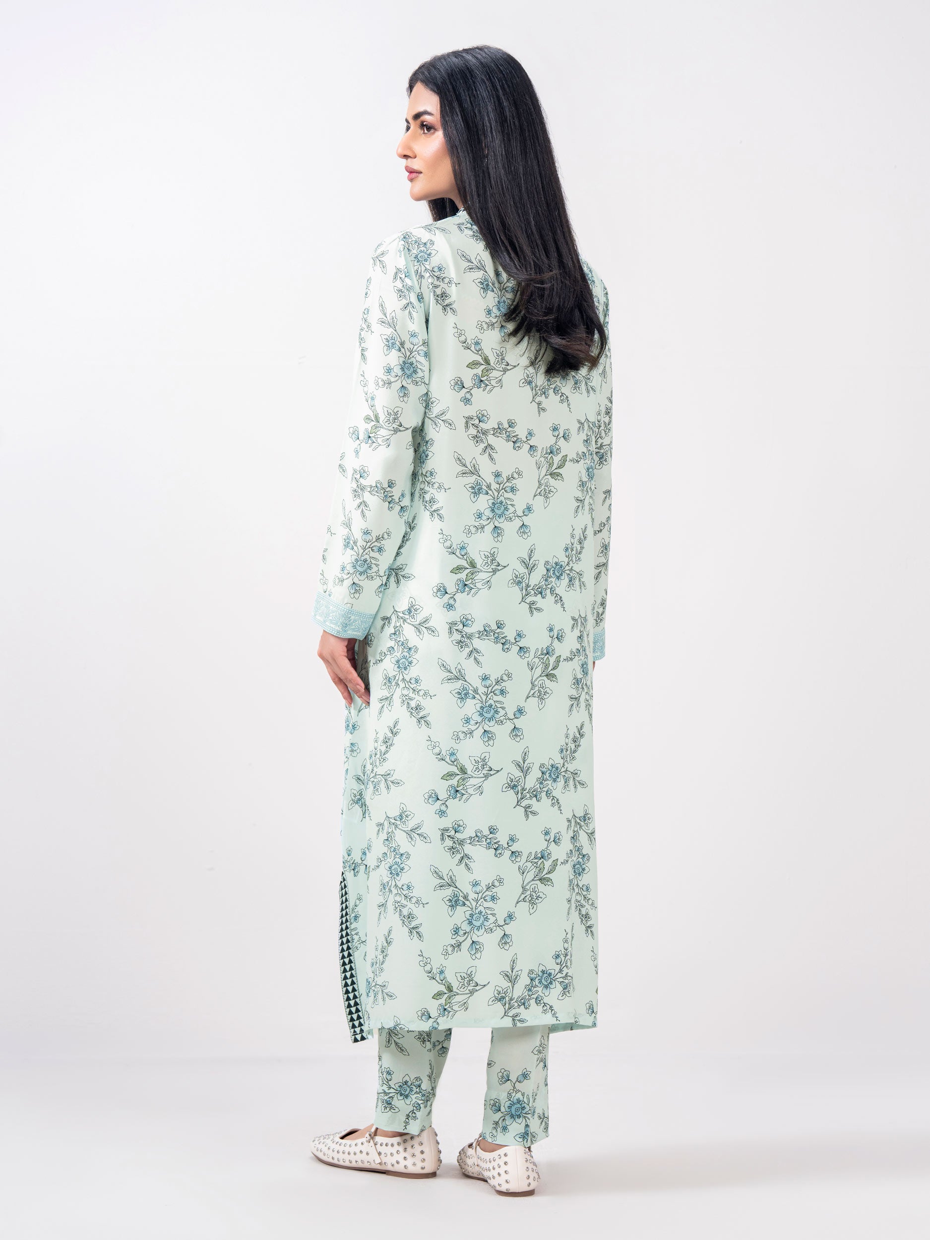 - Narrow-leg printed trousers with an elasticised waistband