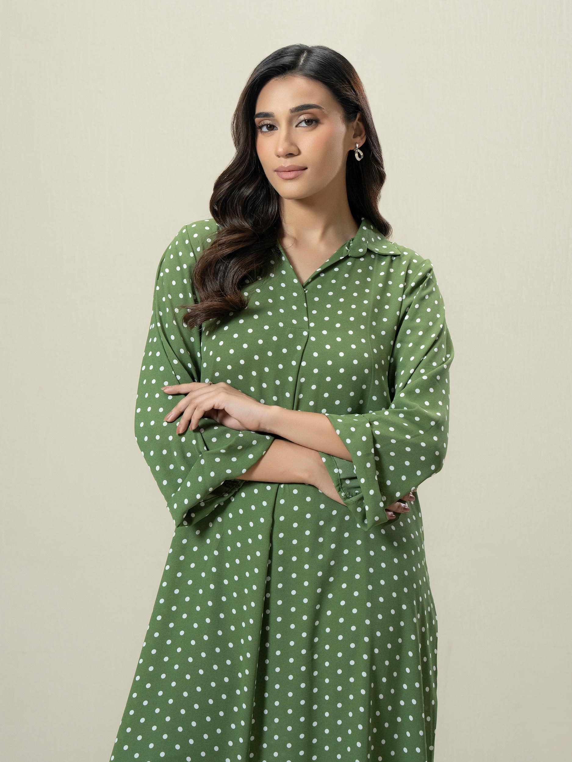 - Narrow-leg polka-dotted trousers with an elasticised waistband