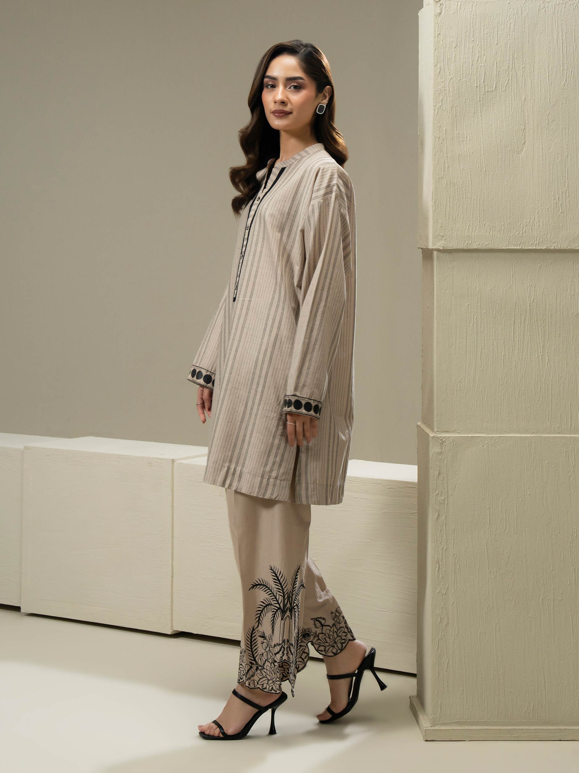 - Dyed embroidered wide-leg trousers with elasticized waistband