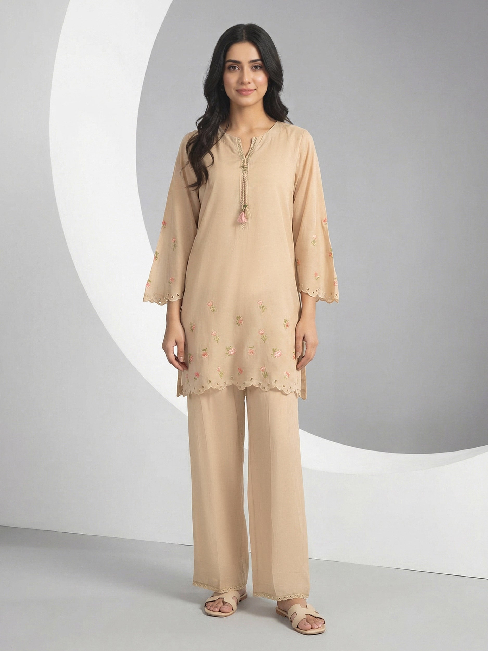 2 Piece Viscose Cotton Suit- Embroidered (Pret)