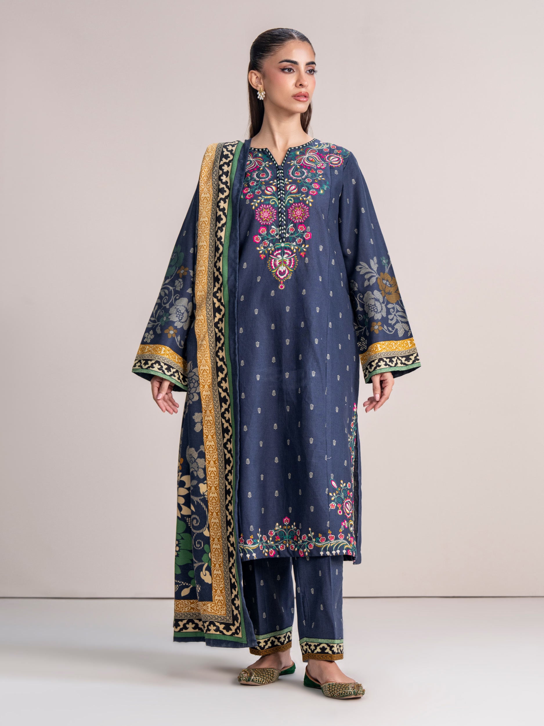 3 Piece Khaddar Suit- Embroidered (Pret)