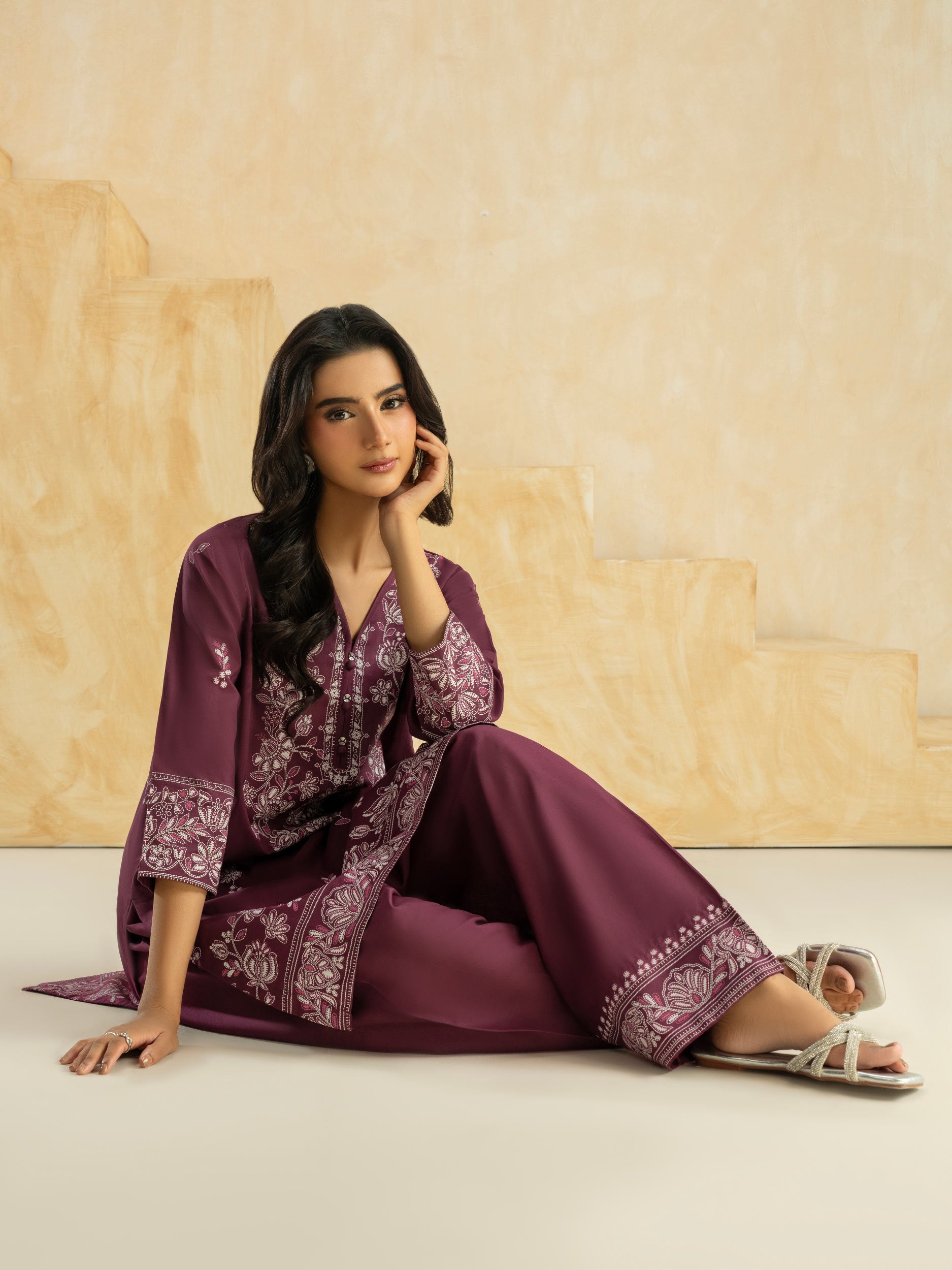 2 Piece Cambric Suit-Paste Print (Pret)