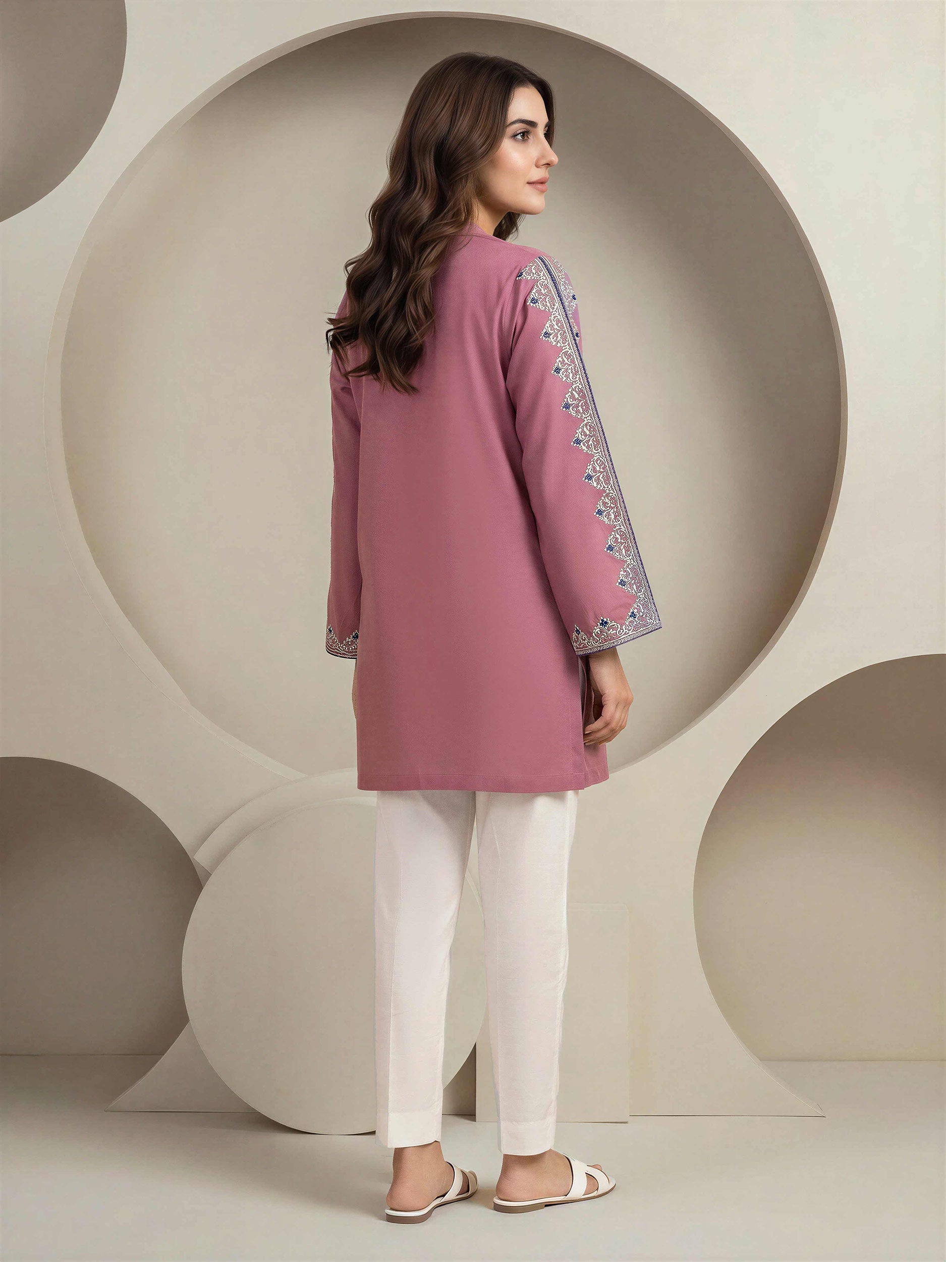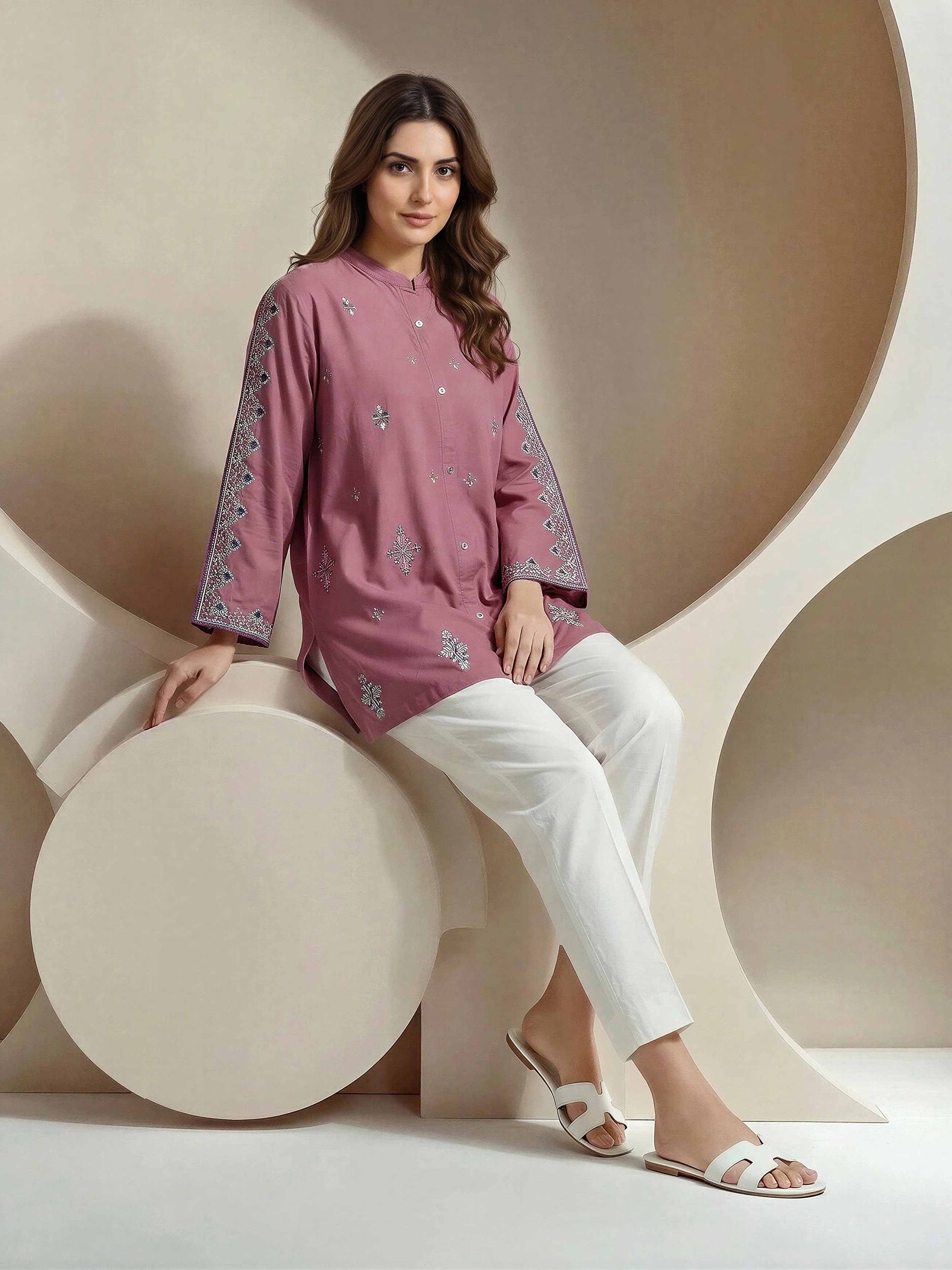 - Button-down embroidered kurti with band collar