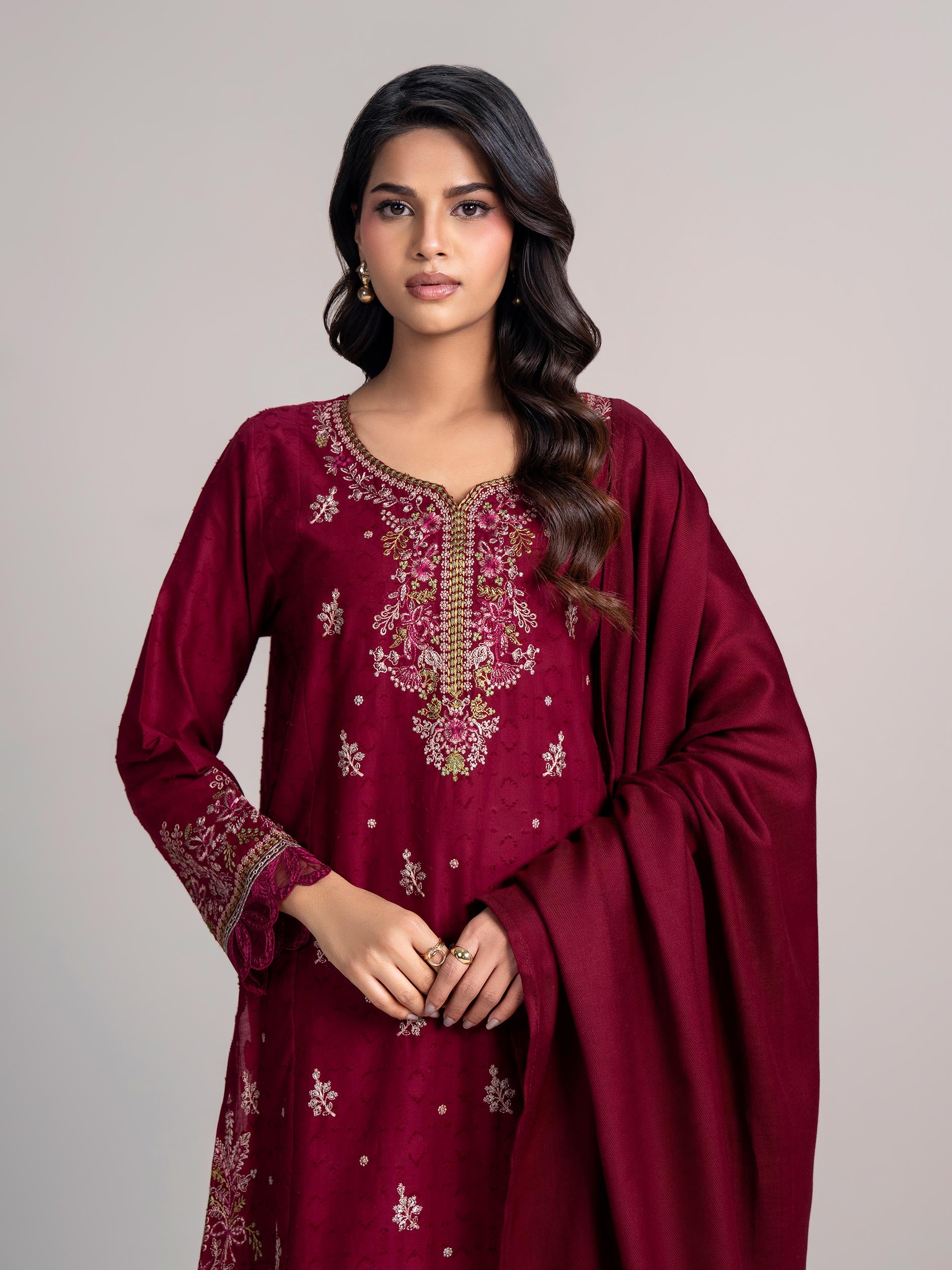 3 Piece Self Jacquard Suit- Embroidered (Pret)