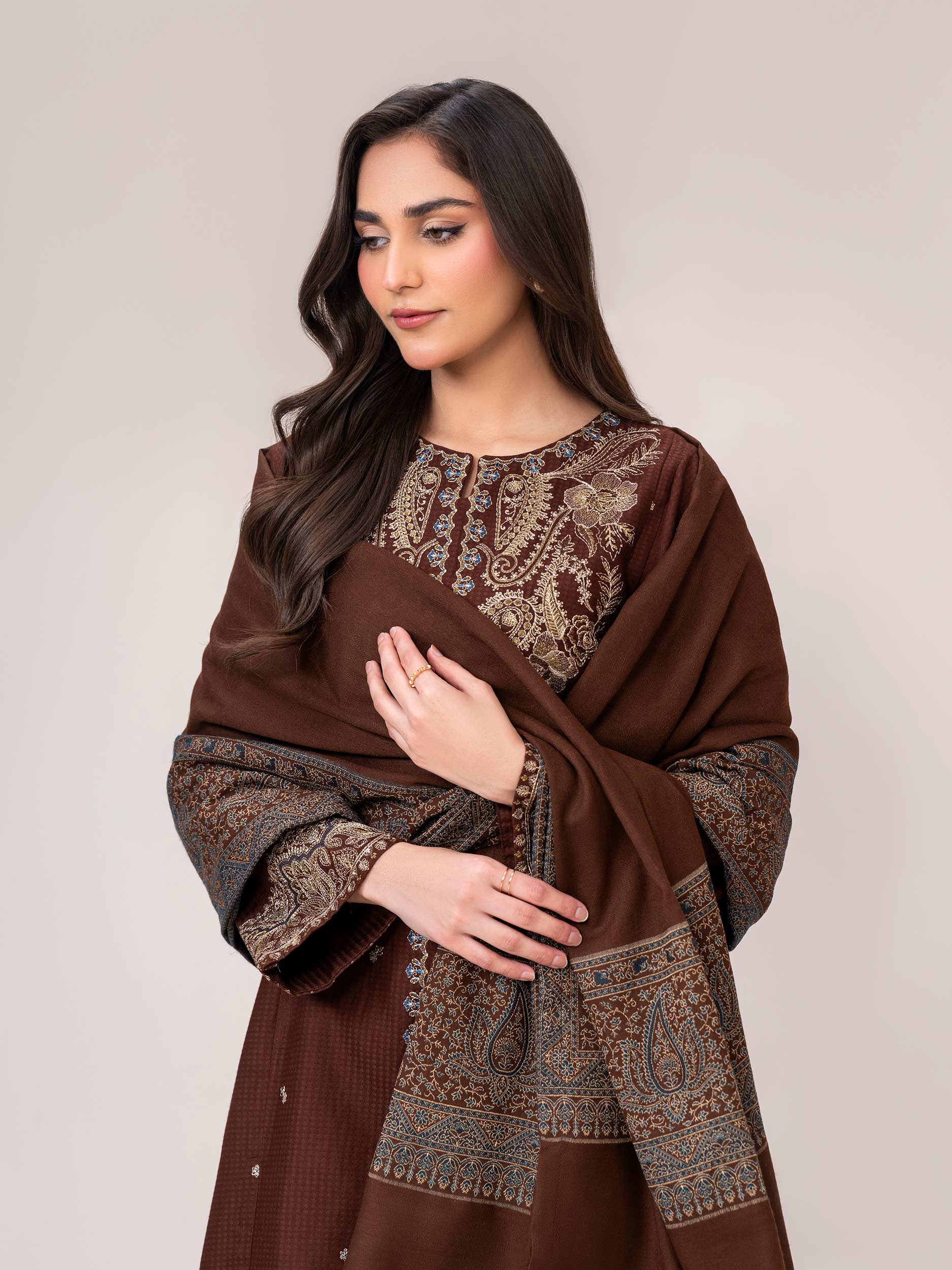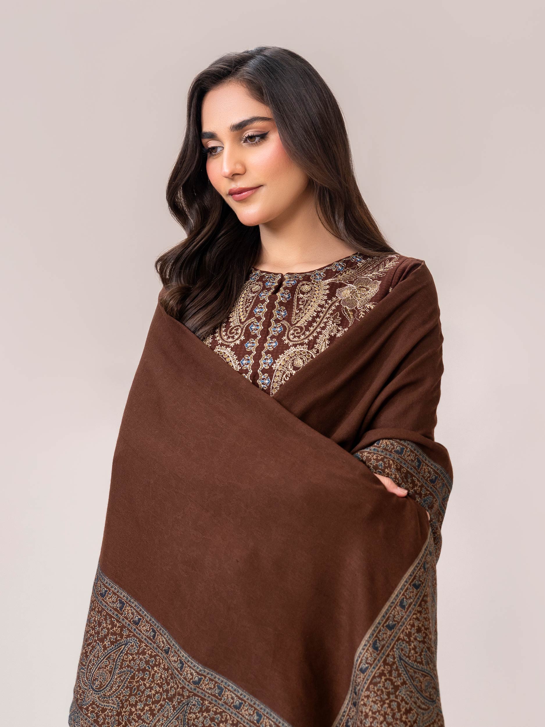 - Plain shawl with printed borders