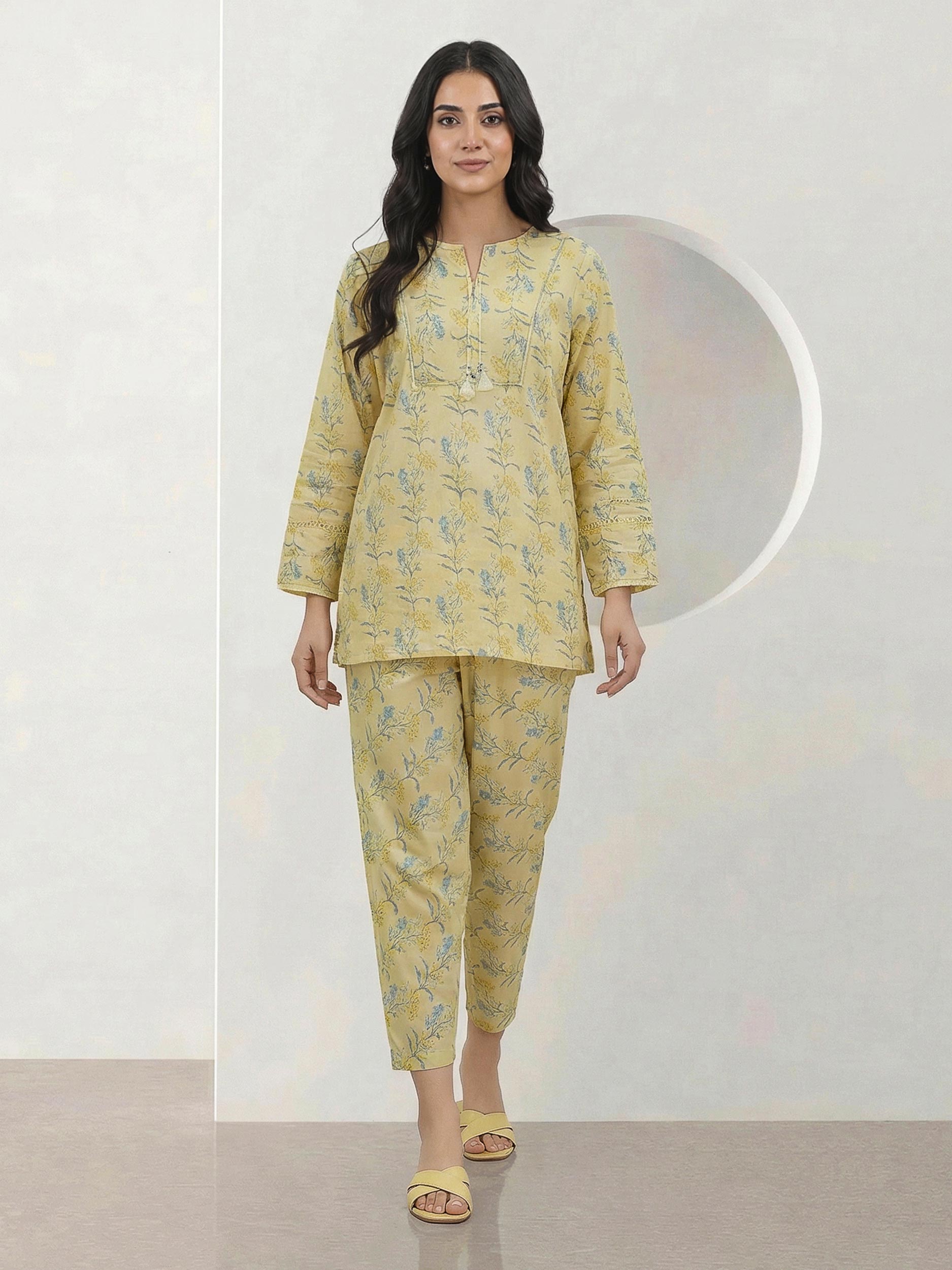 - Printed shalwar with a cross-slit hem and an elasticized waistband