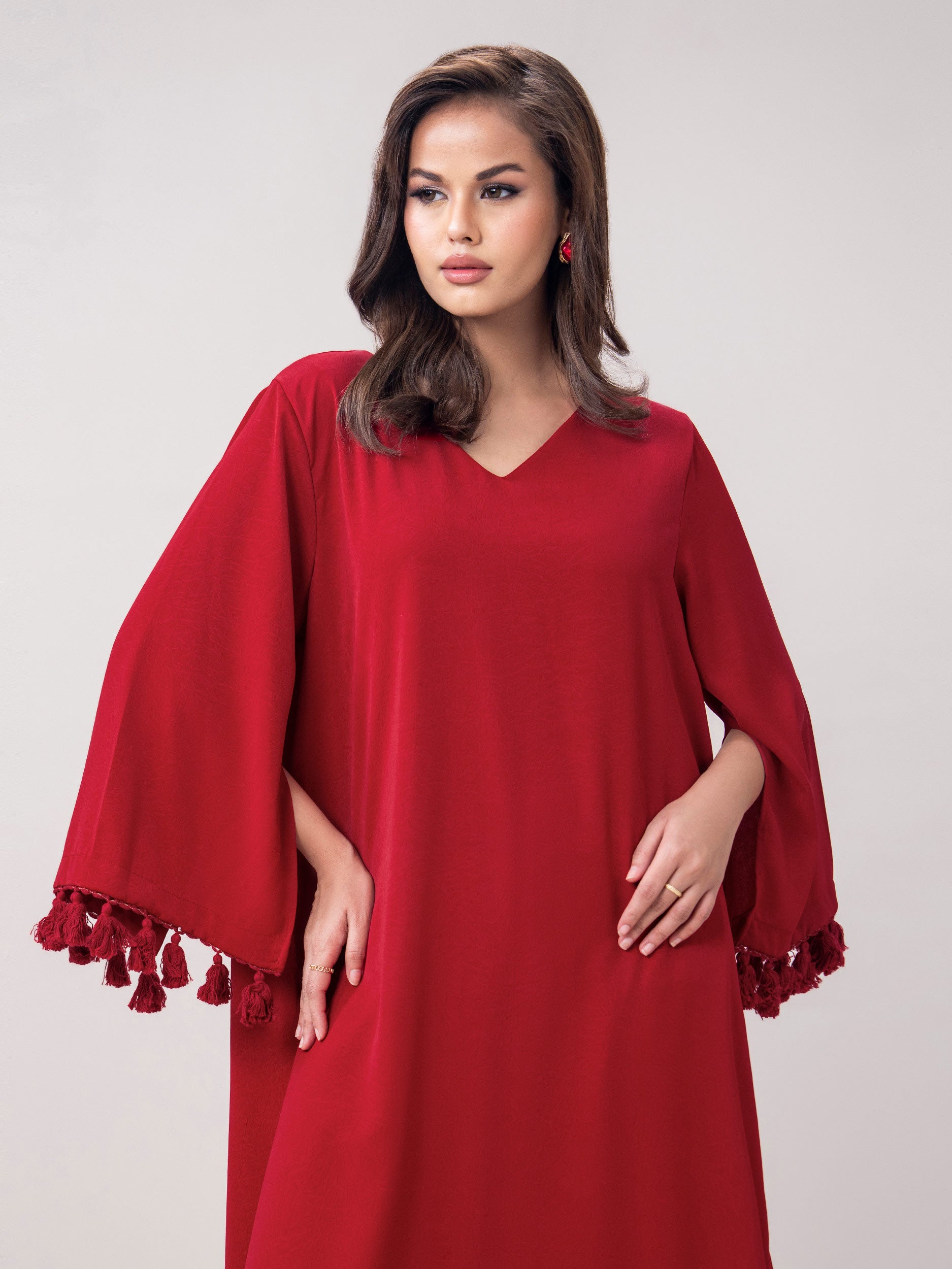 - Relaxed-fit V-neckline shirt with slit sleeves and tassel detailing