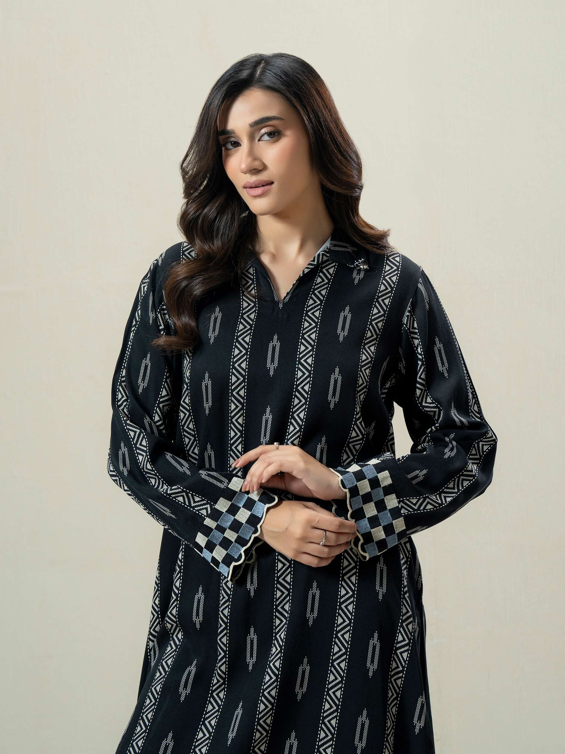 - Printed shirt with collar neckline