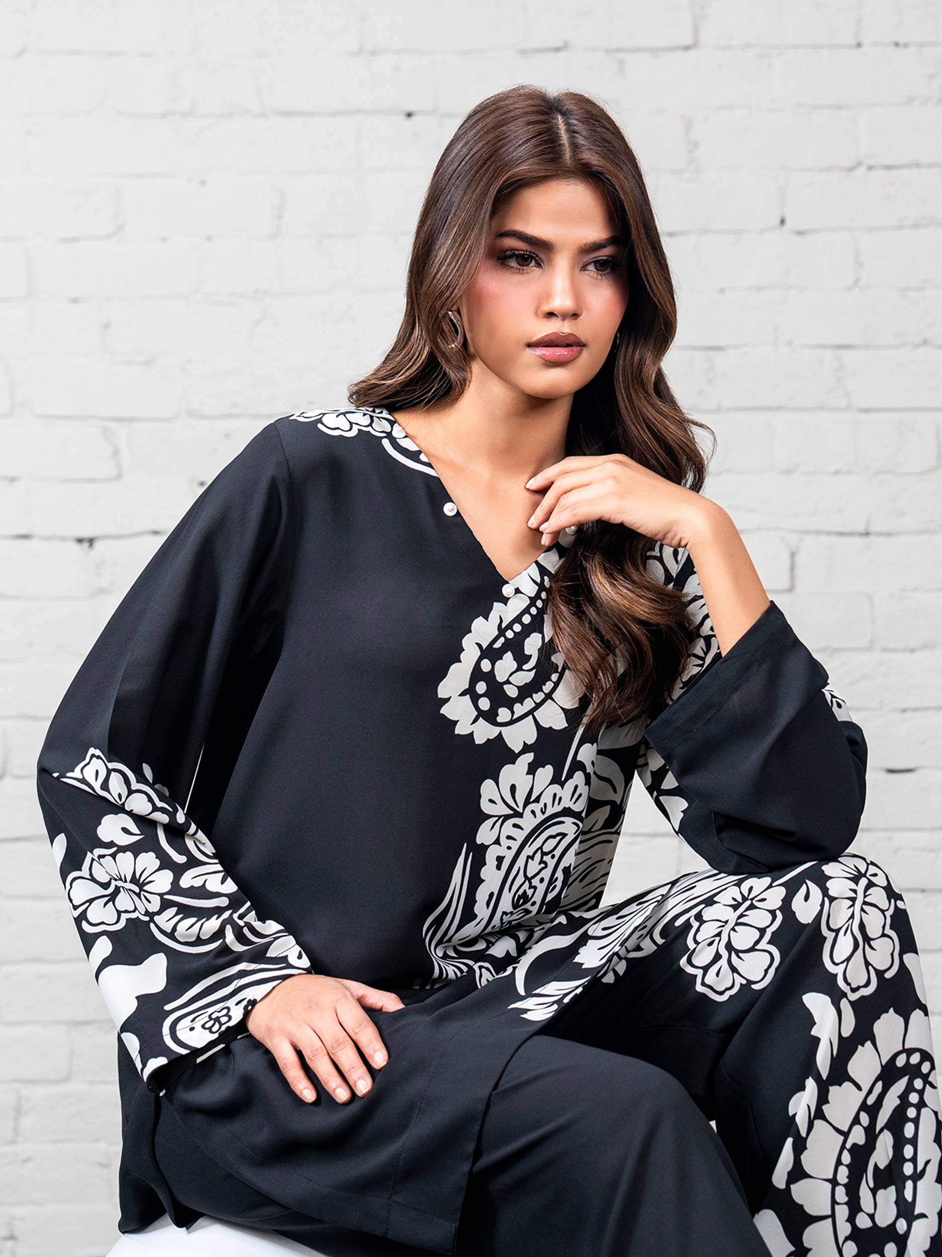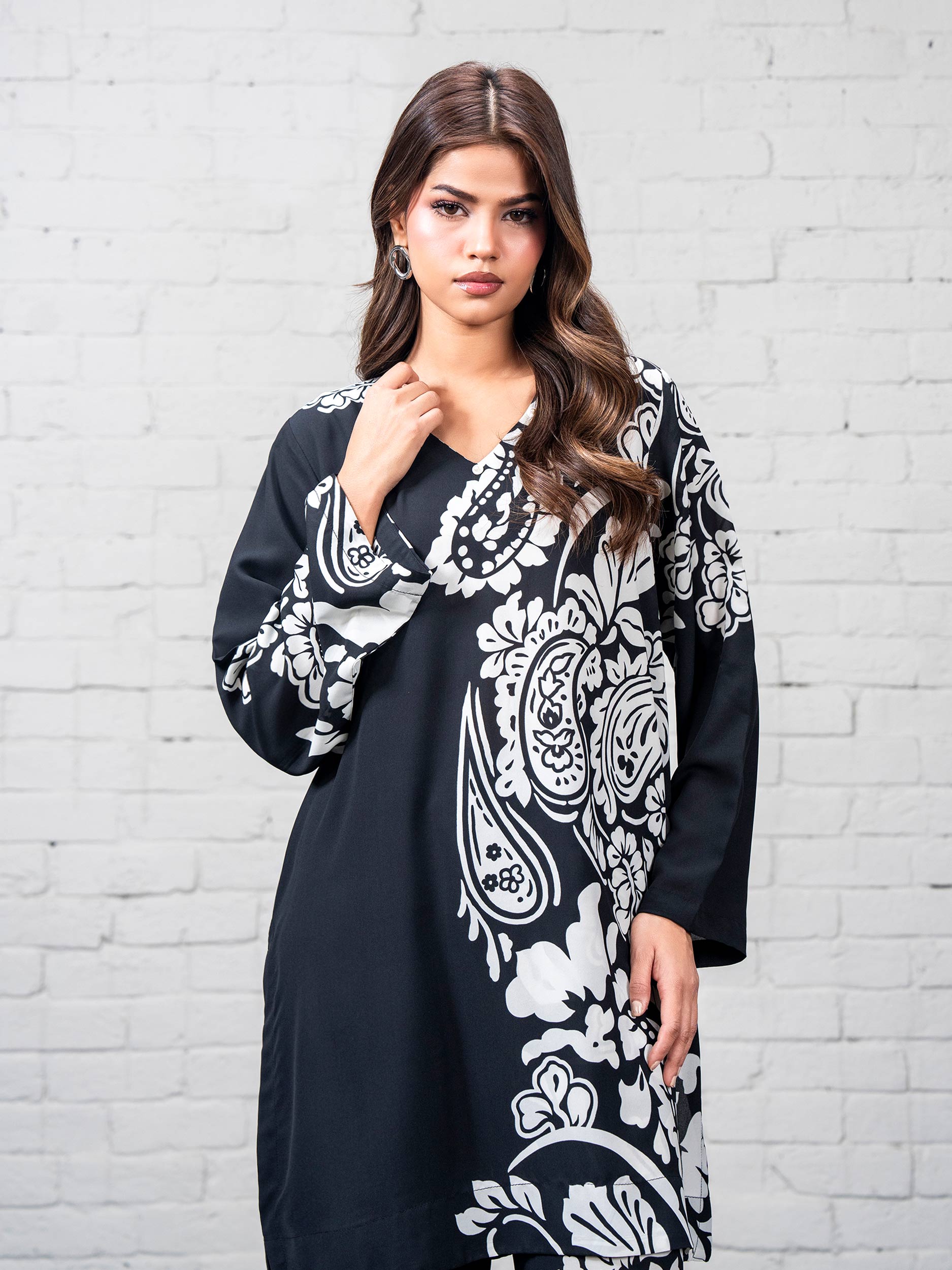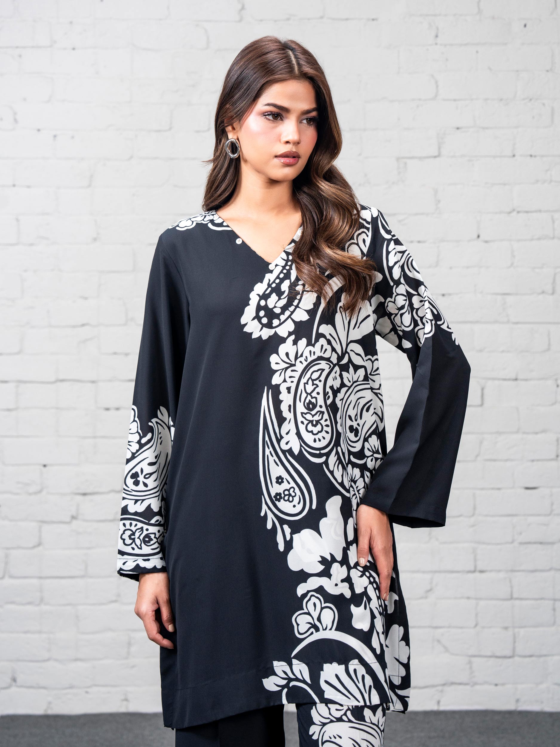 - Printed top with a V-neckline and a flowy silhouette