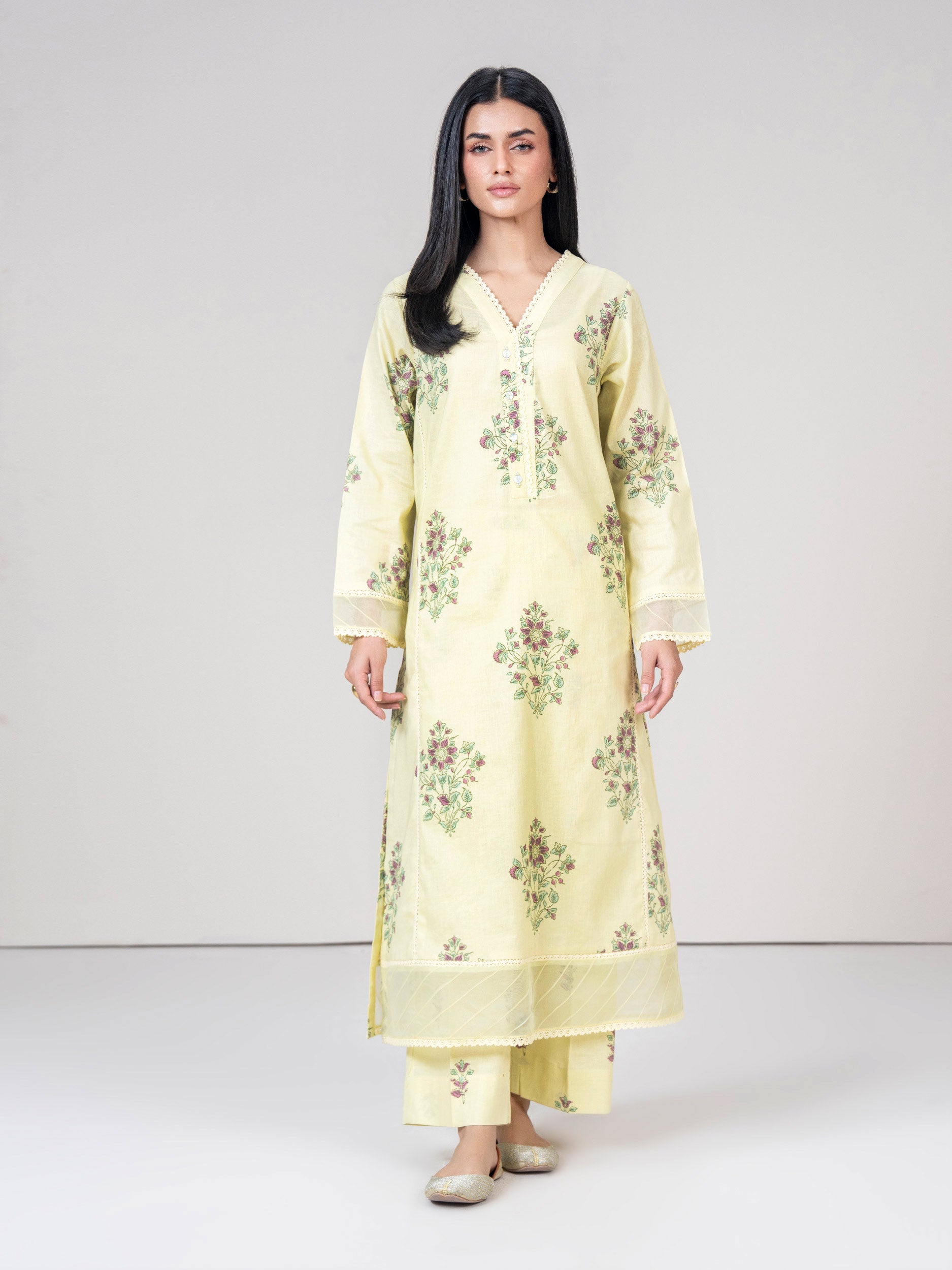 - Loose fit, V neckline printed shirt with organza patch detailing