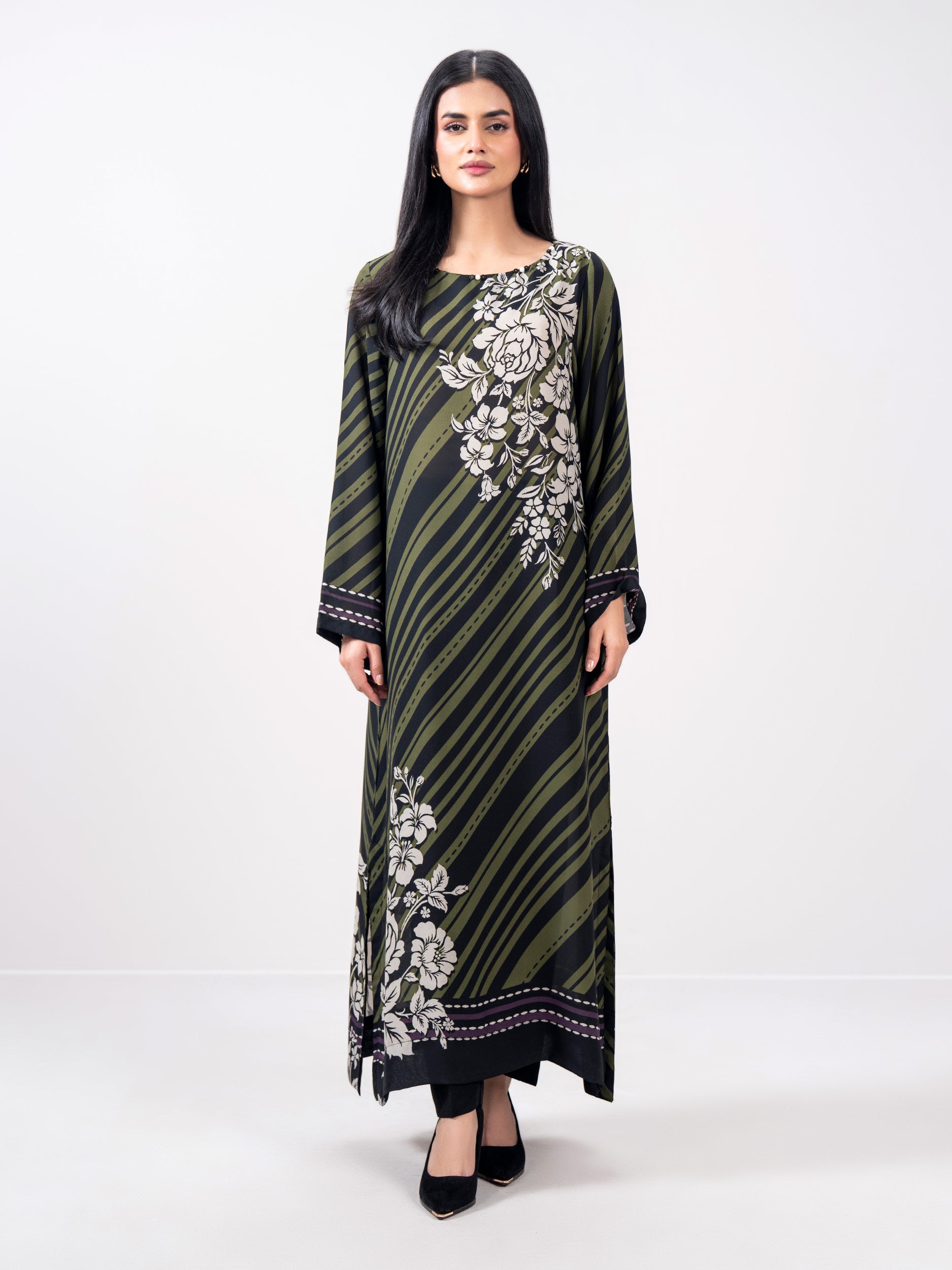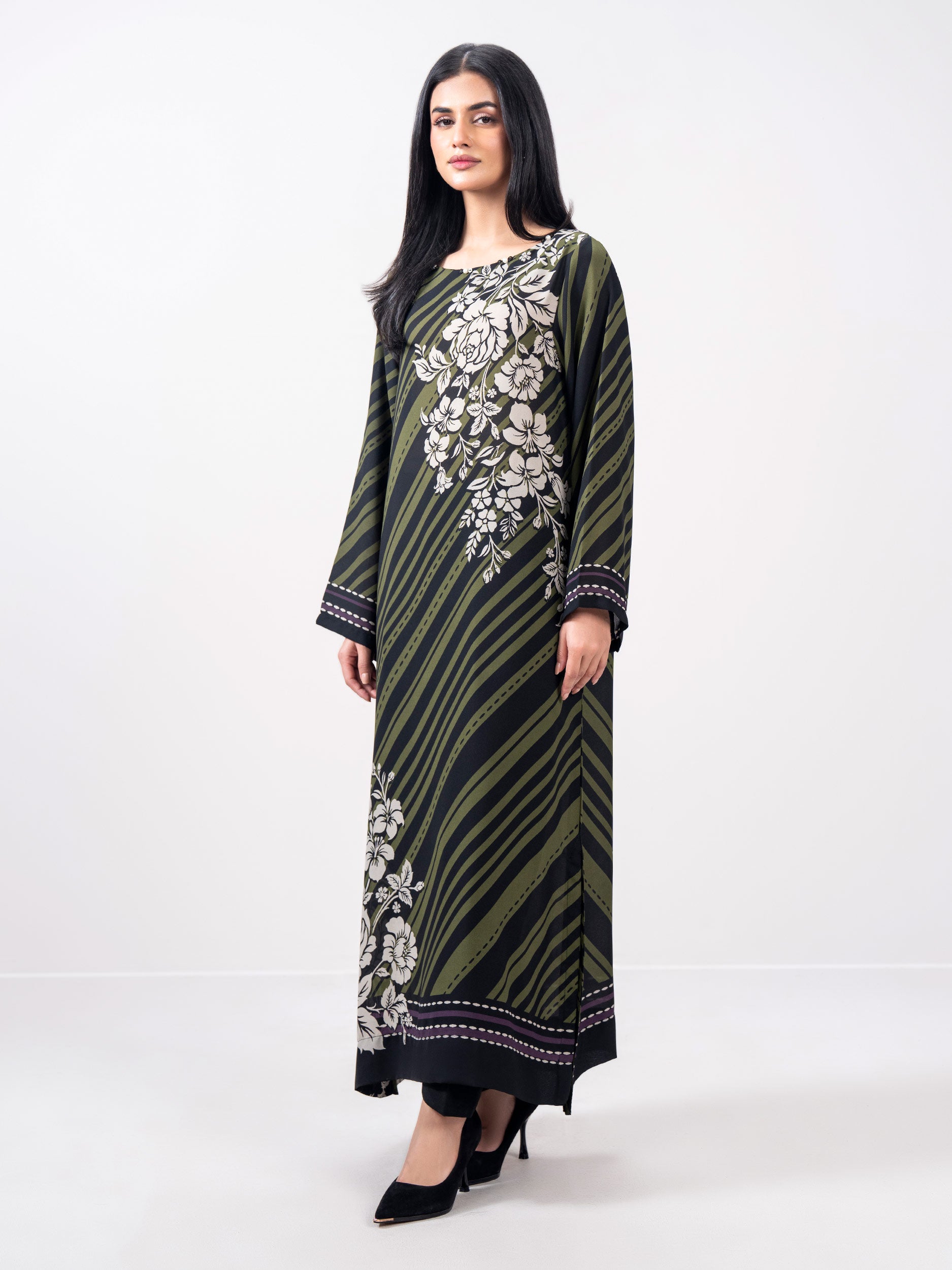 Flowy printed shirt with a boat-neckline and contrast borders on the sleeves and hem