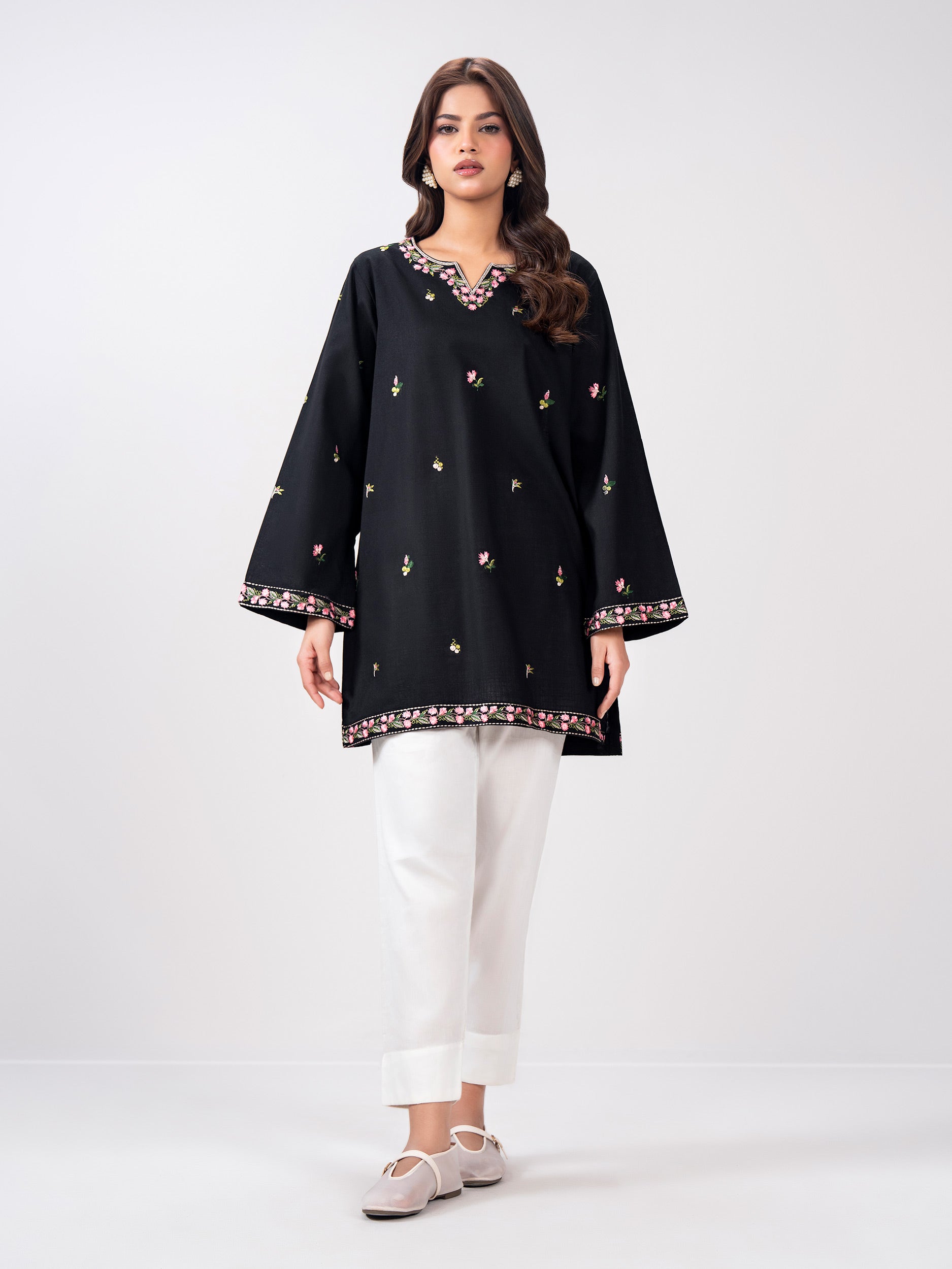 Slub Khaddar Kurti- Embroidered (Pret)